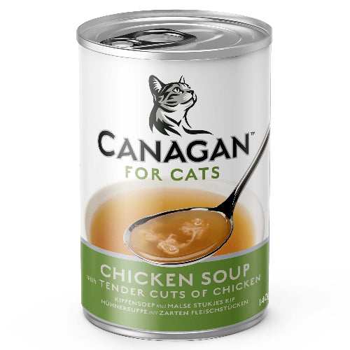 A delicious Chicken Soup that is suitable for both adult cats and kittens. Cats often don't drink enough water, but they will find it hard to resist this tasty drink. With tender slow cooked pieces of chicken, this soup is perfect as a topper or a snack between meals.