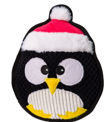 House of Paws tough Penguin Christmas dog toy made from textured fabric, with embroidered face detail, a squeaker and a tough black nylon binding. Toy height - 20cm. Whether as a stocking filler or a festive treat, this delightful dog toy is sure to make tails wag this Christmas! This toy is for use by pets only. Always supervise your dog during playtime and remember to remove toys if damage occurs or any parts become detached.