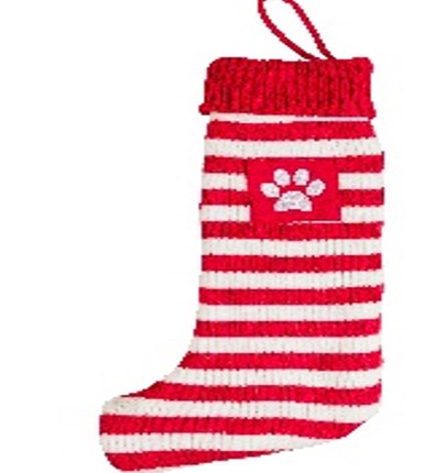 House of Paws knitted stripy Christmas stocking - perfect for filling with toys and treats for your four legged friend. It comes with a knitted loop so easy to hang in your home. Approx dimensions of toy - 47 x 19 x 2cm.