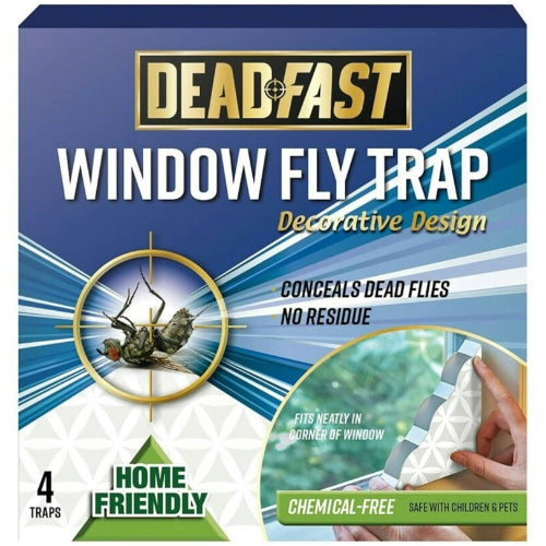 A pack of 4 window fly traps. These window fly traps help with fly issues more discreetly than traditional fly traps. Chemical free scented lure. Easy to use, simply stick the fly traps to the bottom corner of the window.