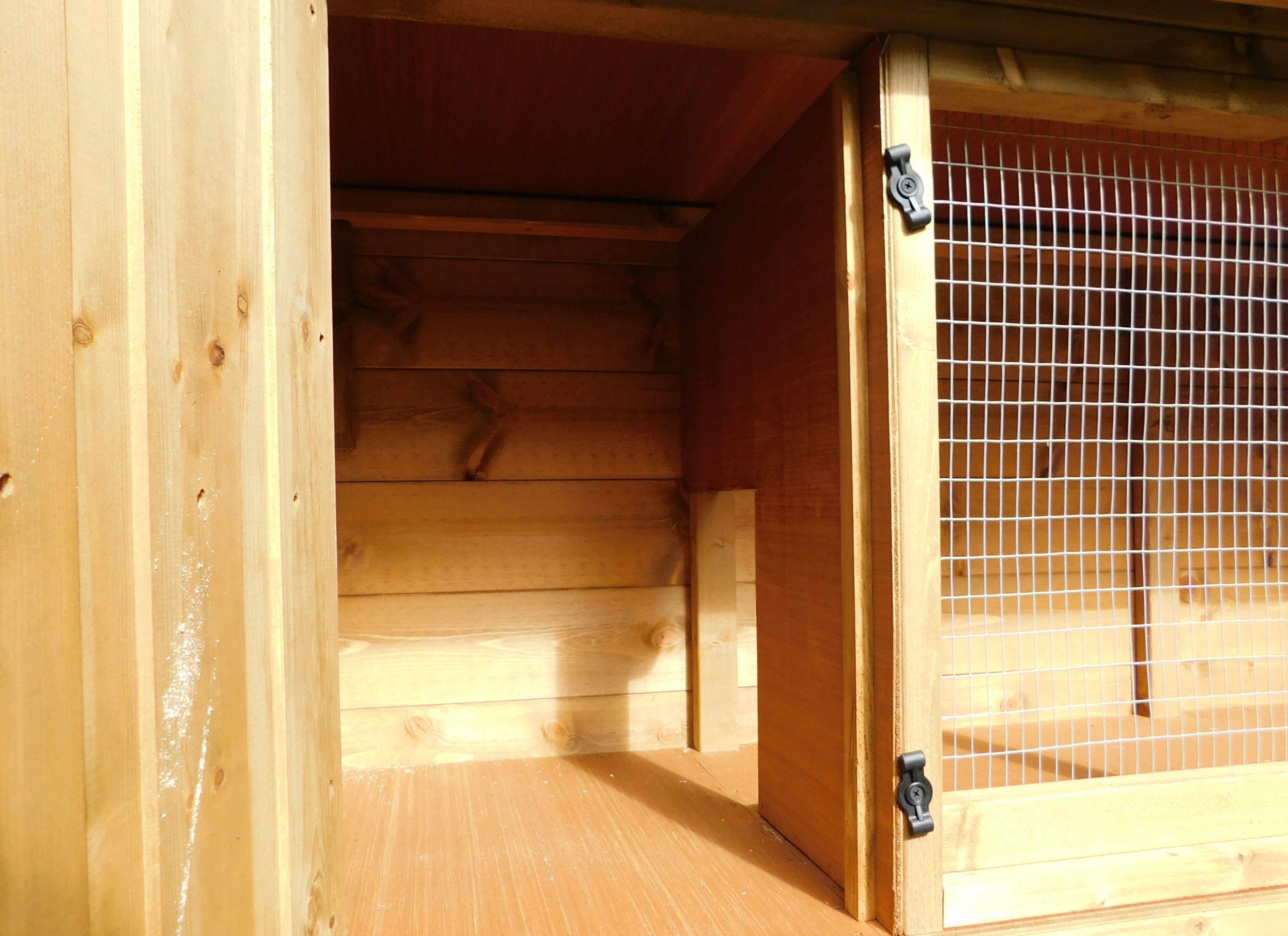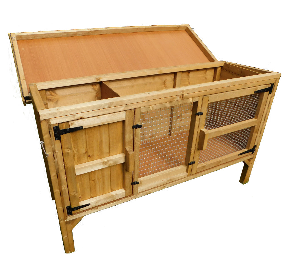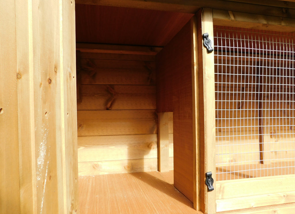 This high-quality hutch is made with Tongue & Groove panelling to give more reinforced protection from the elements all year round. The lift top allows for easy access for handling pets and cleaning, with hook latches at both sides to secure the roof when closed.